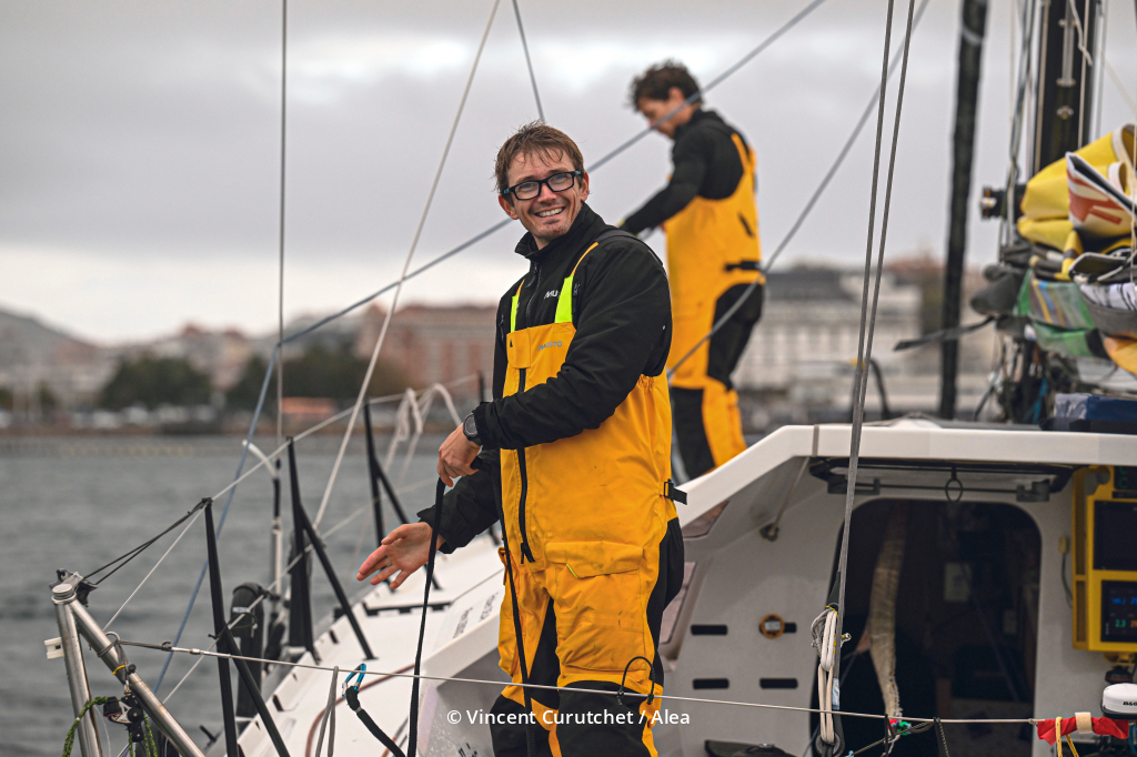 « Nous sommes un peu cassés mais ça va. On n’a pas beaucoup de problèmes sur le bateau, nous avons juste un câble d’une voile d’avant à remplacer. Notre programme est de faire un coup de propre dans le bateau et de bien tout sécuriser avant le vent fort attendu demain. Certains seront encore en mer, ça va être dur pour eux. Ce stop est une bonne décision, ça permet de canaliser tout le monde. Nous sommes vraiment contents d’être arrivés car nous avions peur que le vent mollisse. Nous sommes contents de cette première étape » expliquait Fabien à son arrivée à La Corogne.