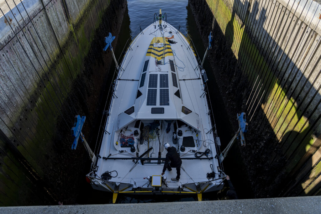 « C’est un format de saison atypique, en solitaire. Nous avons peu l’occasion de naviguer seul sur nos bateaux. Il fallait donc faire ce chantier pour être fin prêt. L’année va être belle sportivement avec en ligne de mire cette course exceptionnelle qu’est la Route du Rhum » s’enthousiasme Fabien.